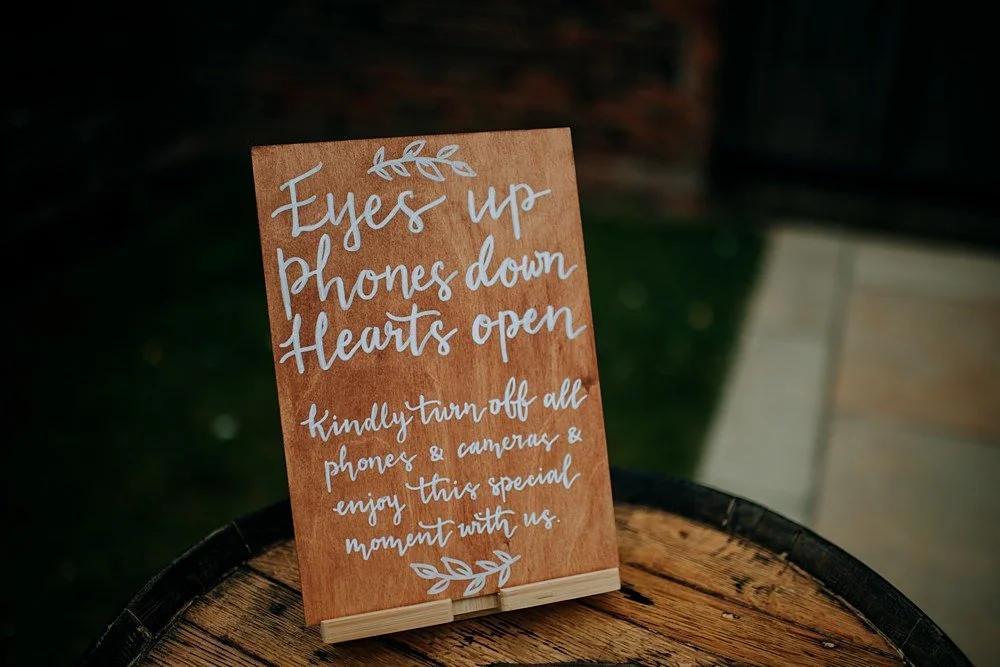 Imagine standing at the end of the aisle, your heart full of excitement, ready to marry your partner. You look out, hoping to see your guests’ smiling faces, but instead you’re met with a sea of phones. While it’s natural for friends and family to want to capture the moment, devices can create a sense of distance between you and your loved ones, and often lead to awkward photos with screens blocking the view.
